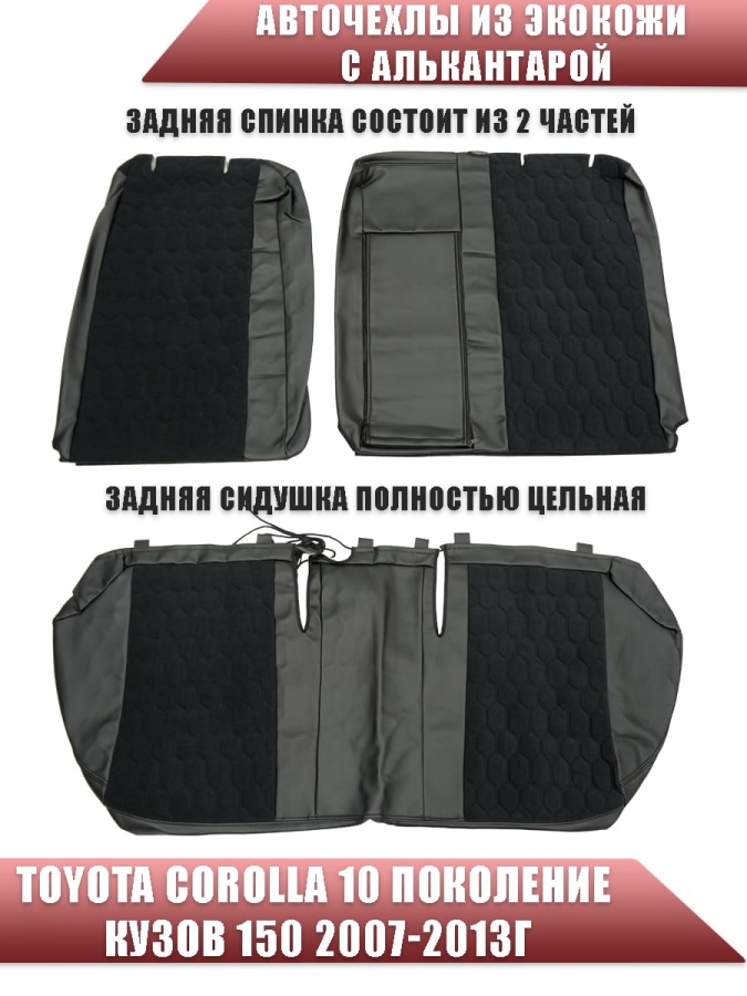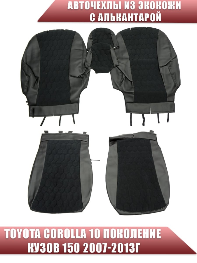 Авточехлы Toyota Corolla Тойота Королла 2007-2013г кузов 150 экокожа алькант черная серая нить Соты