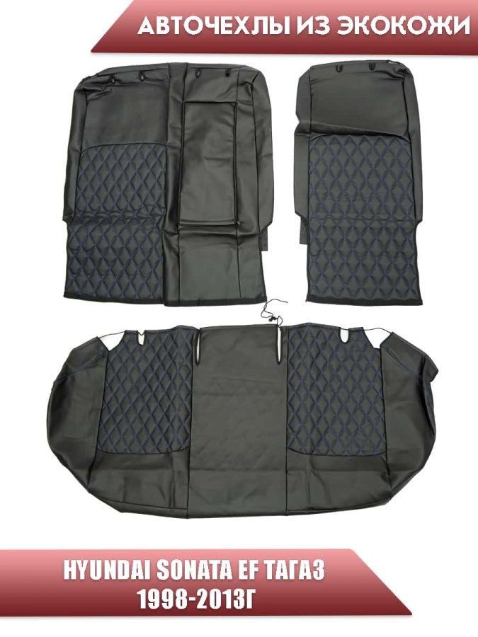 Авточехлы Hyundai Sonata EF Хендай Соната Тагаз 1998-2013г экокожа черная синяя нить ромб