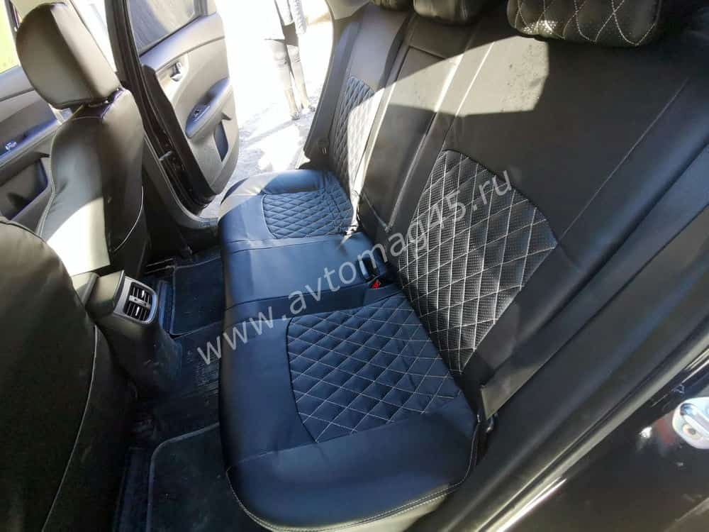 Авточехлы Kia Cerato Киа Серато 2018-2022г 4 поколение экокожа черная серая нить ромб