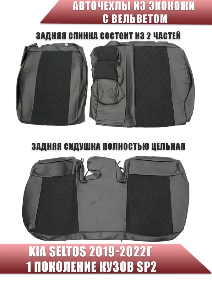 Авточехлы Kia Seltos Киа Селтос 2019-2022г экокожа вельвет черная серая нить ромб Maximal