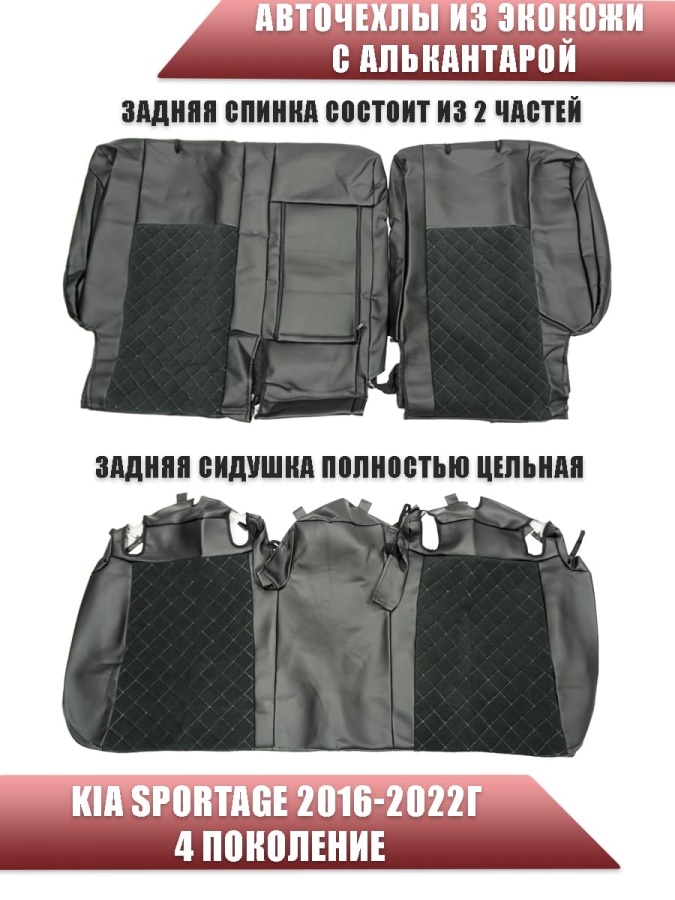 Авточехлы Kia Sportage Киа Спортаж 2016-10.2022г 4 пок экокожа алькантара черная серая нить ромб