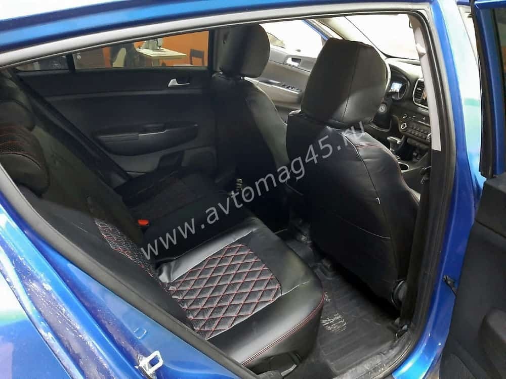 Авточехлы Kia Sportage Киа Спортаж 2016-10.2022г 4 пок экокожа черная красная нить ромб