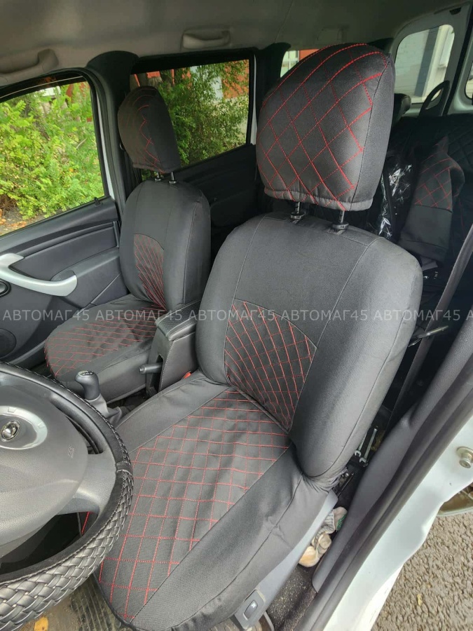Авточехлы Lada Largus Ларгус Largus Cross 5 местный 2/3 2012-2021г жаккард черн с красн.н ромб Барс