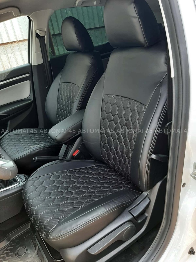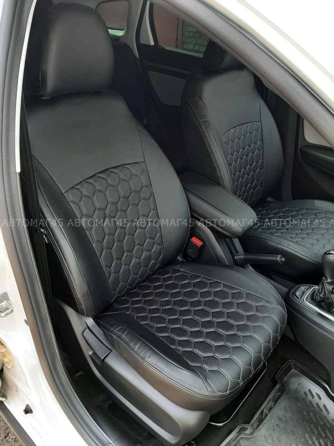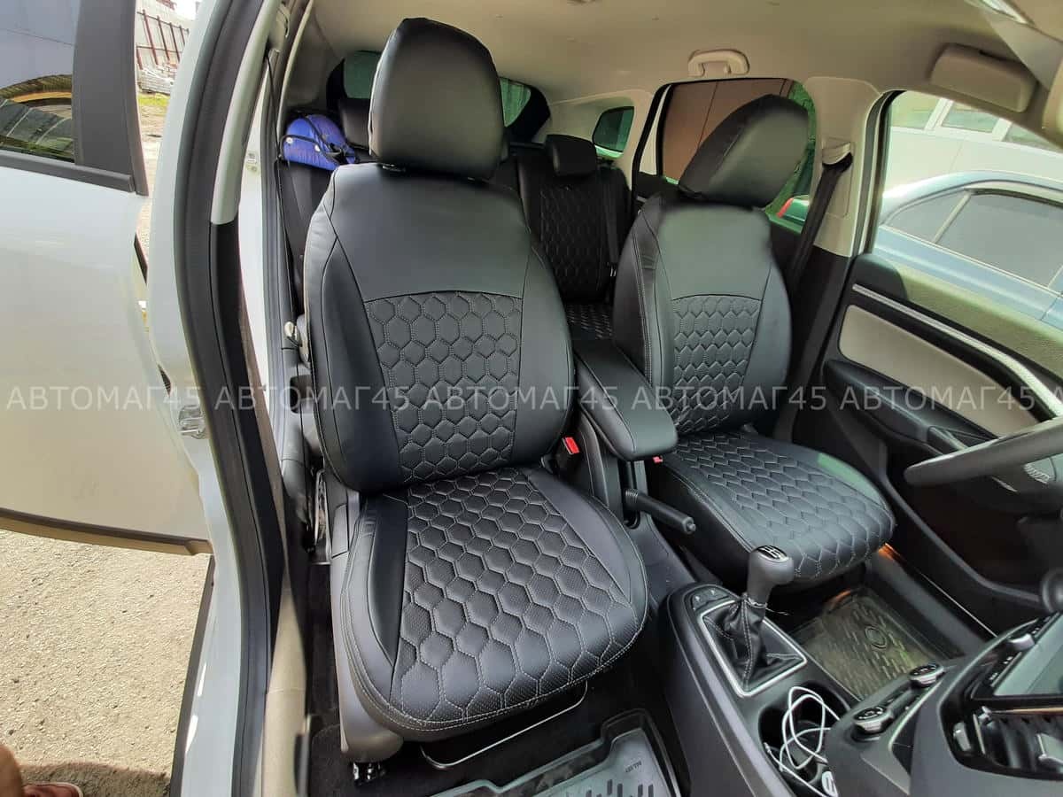 Авточехлы Lada Vesta Лада Веста седан SW SW Cross экокожа черная с серой ниткой соты