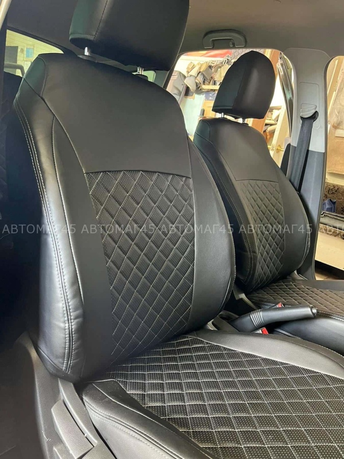 Авточехлы Lada Vesta Лада Веста седан SW SW Cross экокожа черная с серой ниткой ромб TREND