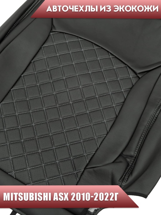 Авточехлы Mitsubishi ASX Мицубиси АСХ экокожа черная серая нить ромб