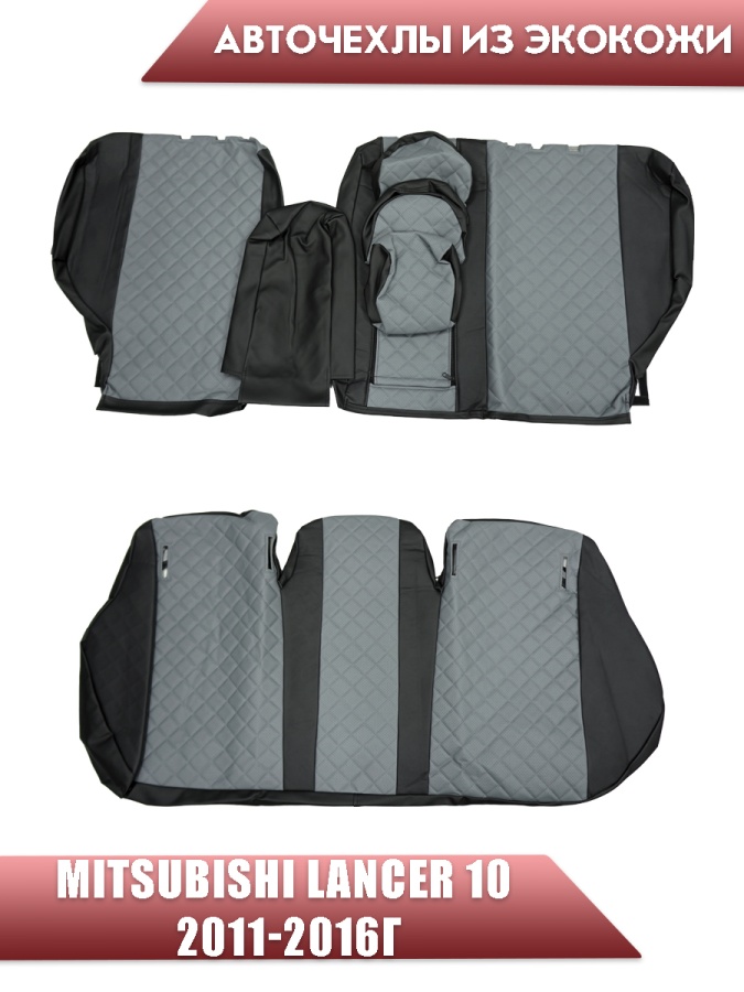 Авточехлы Mitsubishi Lancer 10 Мицубиси Лансер 10 2011-2016г экокожа черно-серая ромб