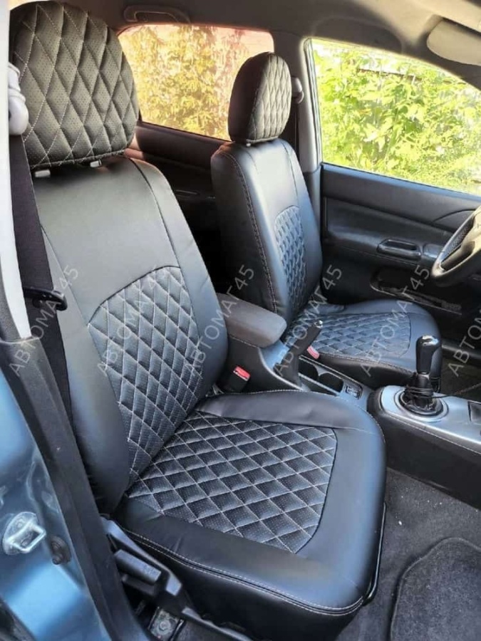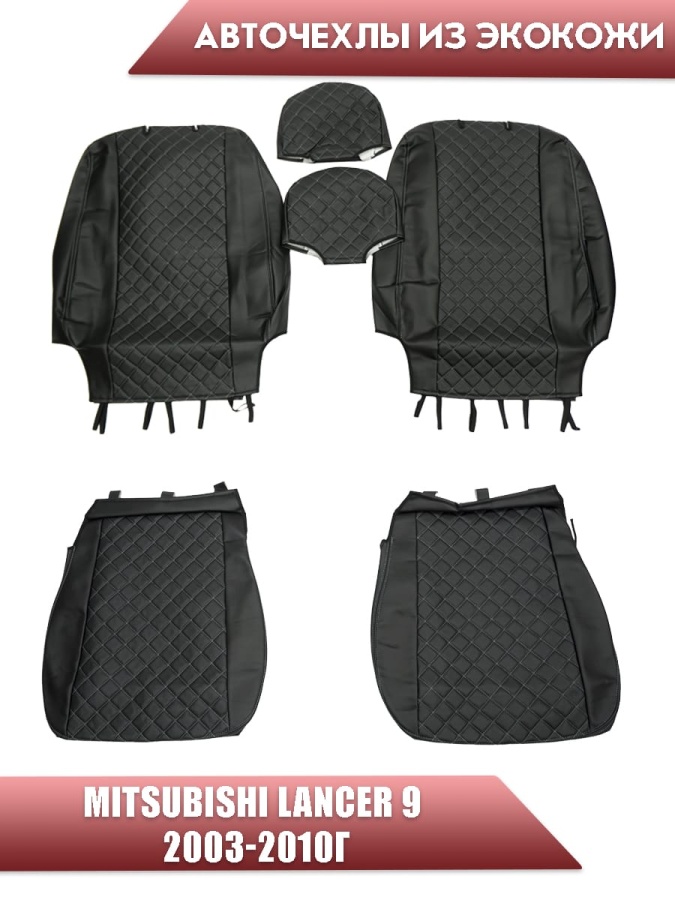 Авточехлы Mitsubishi Lancer 9 Мицубиси Лансер 9 2003-2010г экокожа черная серая нить ромб седан
