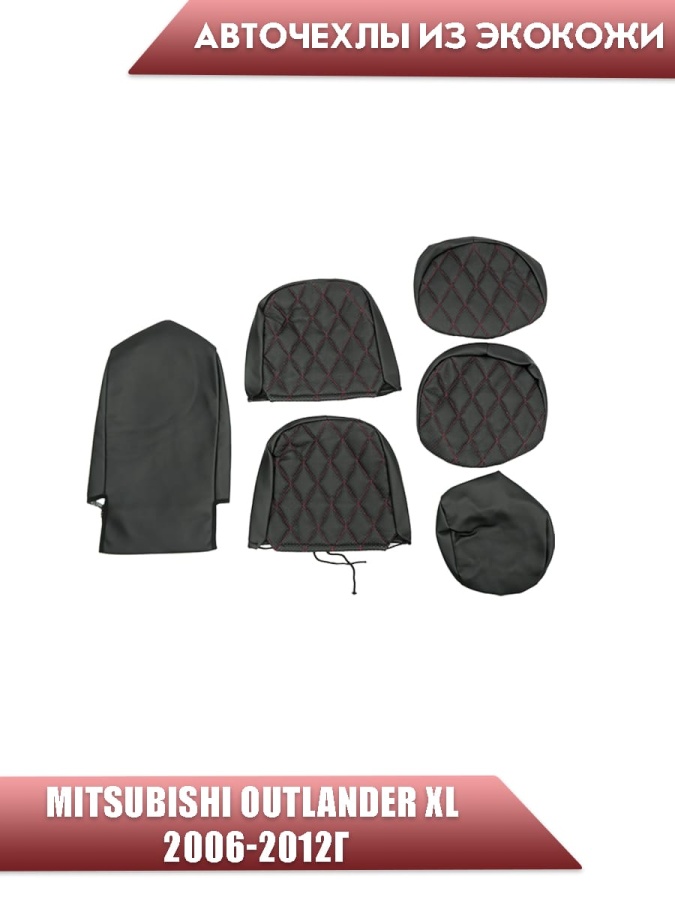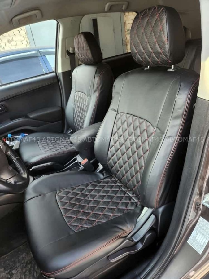 Авточехлы Mitsubishi Outlander Мицубиси Аутлендер XL 2006-2012г экокожа черная красная нить ромб