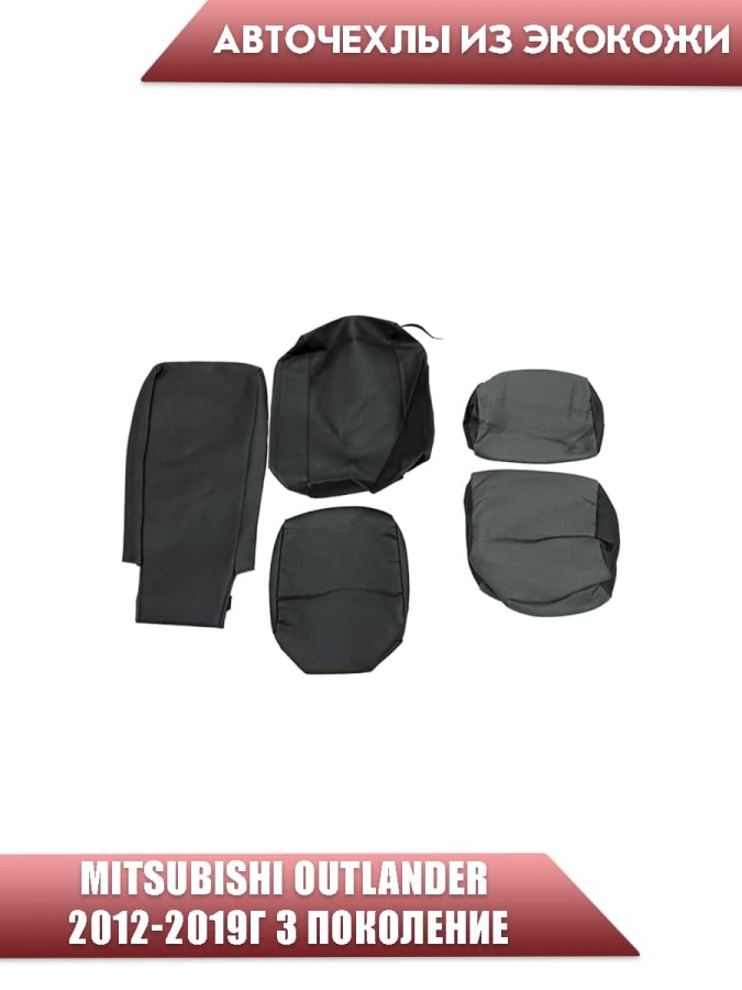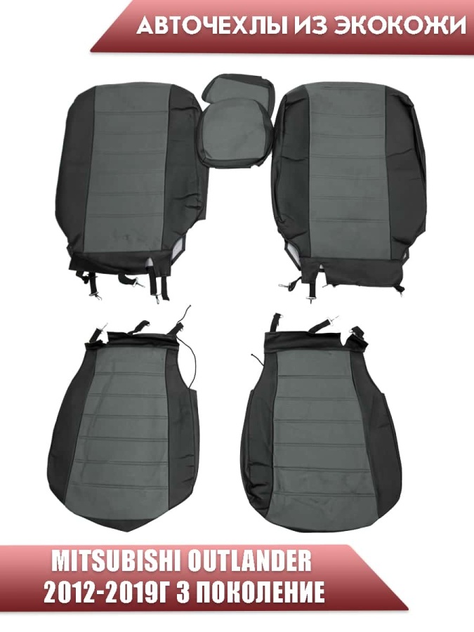 Авточехлы Mitsubishi Outlander Мицубиси Аутлендер 3 пок 2012-2019г экокожа черно-серая
