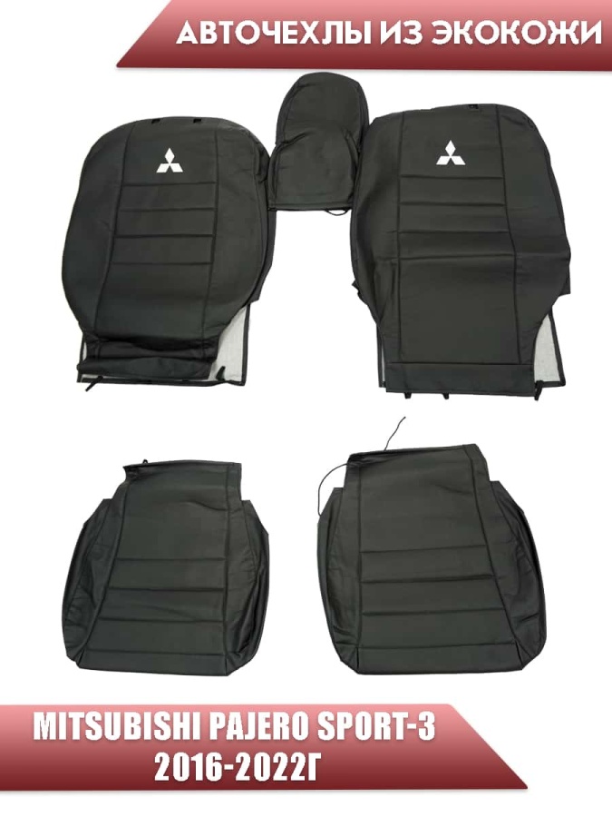 Авточехлы Mitsubishi Pajero sport-3 Мицубиси Паджеро спорт-3 2016-2022г экокожа черная
