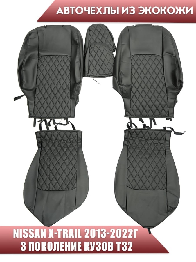 Авточехлы Nissan X-Trail Ниссан Х-Трейл 2013-2022г кузов T32 экокожа черная серая нить ромб