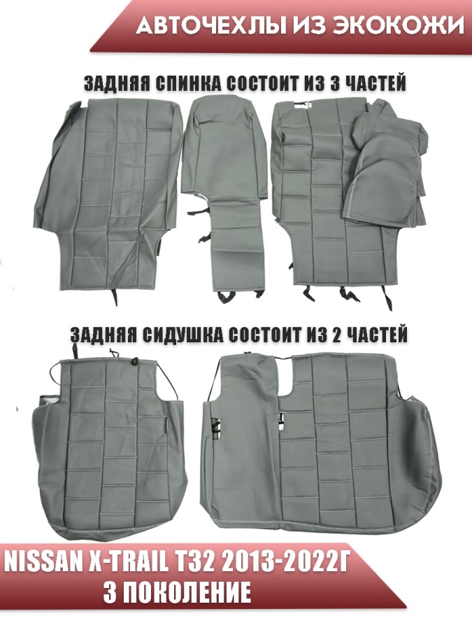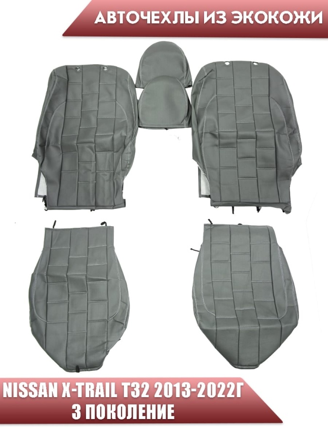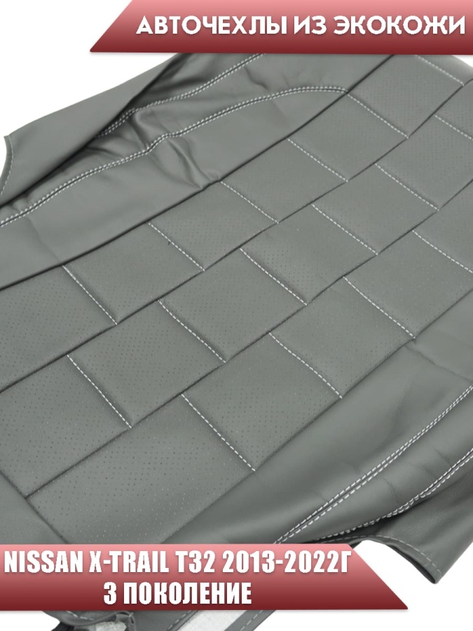 Авточехлы Nissan X-Trail Ниссан Х-Трейл 2013-2022г кузов T32 экокожа серая серая нить квадрат