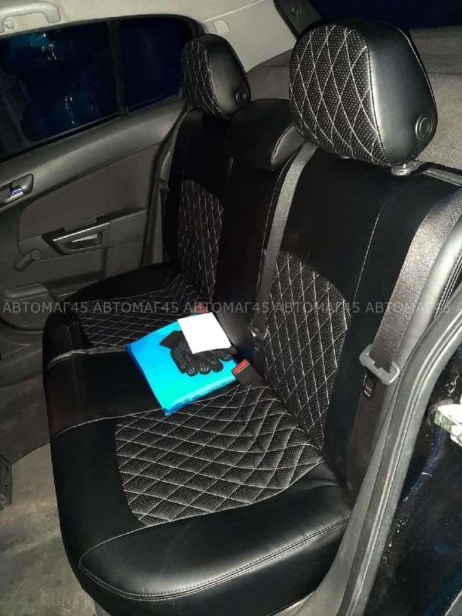 Авточехлы Opel Astra H Опель Астра Н 2004-2011г экокожа черная красная нить ромб