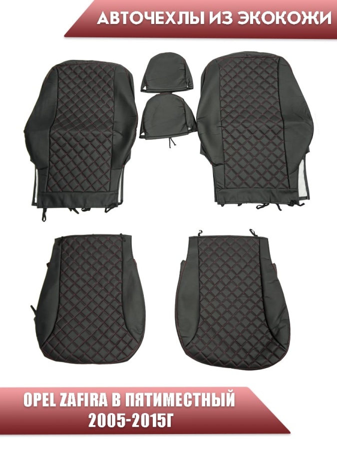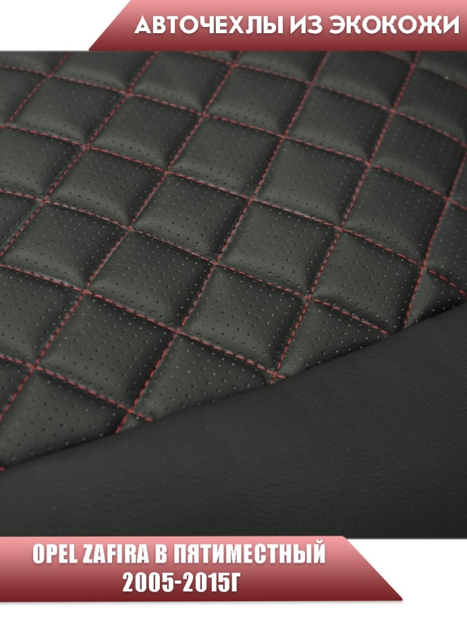 Авточехлы Opel Zafira В Опель Зафира В пятиместный 2005-2015г экокожа черная красная нить ромб