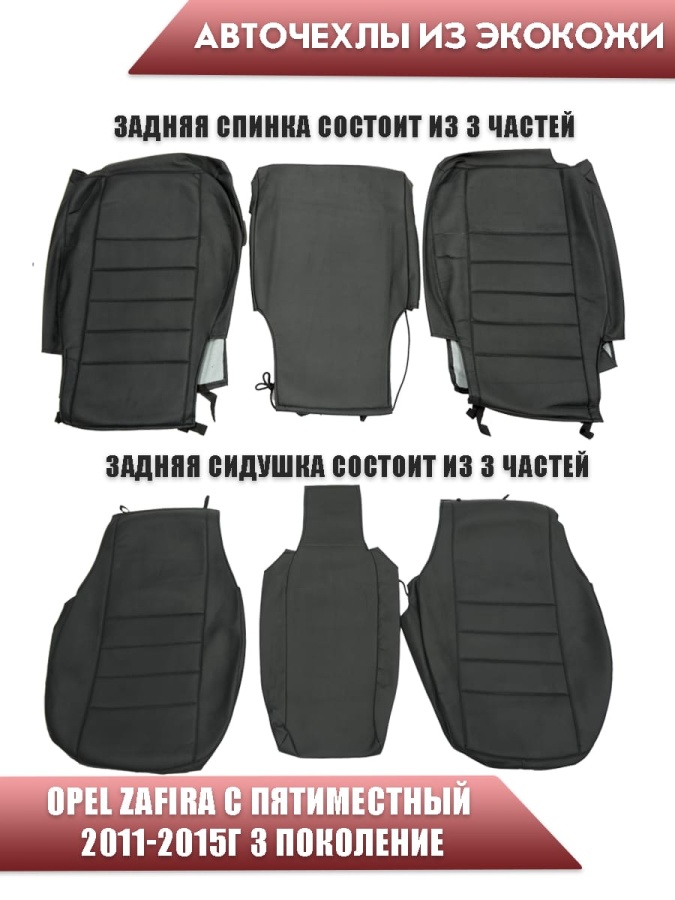 Авточехлы Opel Zafira С Опель Зафира С пятиместный 2011-2015г экокожа черная