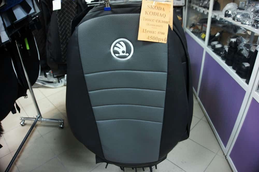 Авточехлы Skoda KODIAQ NS7 Шкода Кодиак 2016-2023г люксовый салон экокожа черно-серая