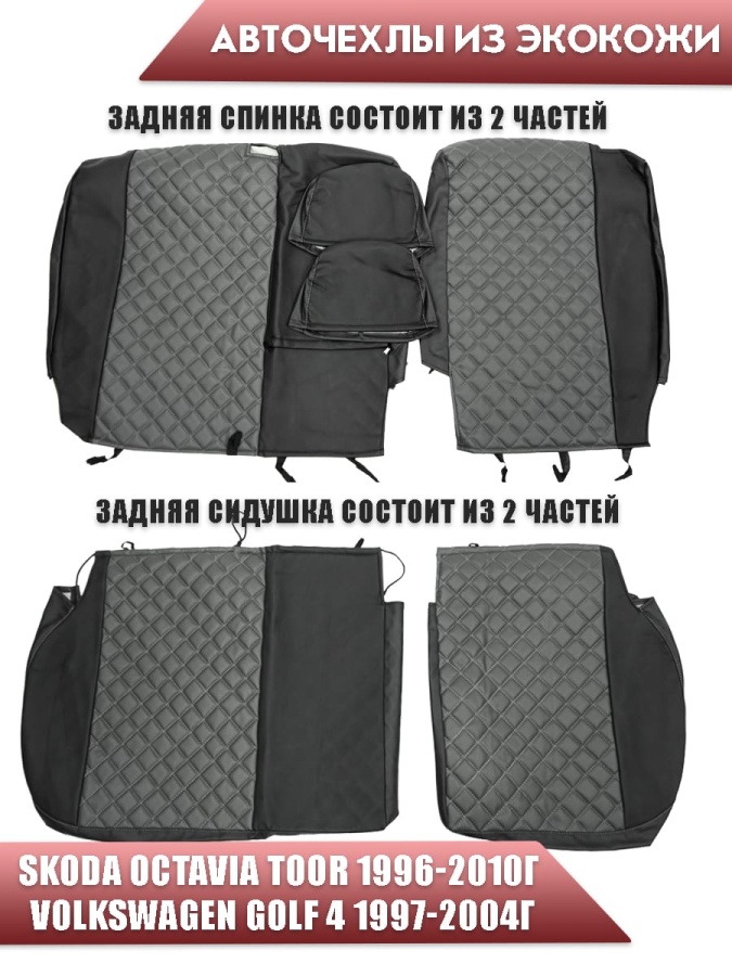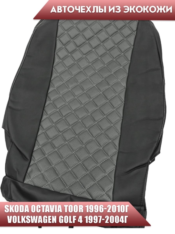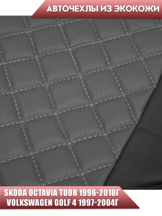 Авточехлы Skoda Octavia Toor 1996-2010г Volkswagen Golf4 1997-2004г экокожа черно-серый ромб Ижевск