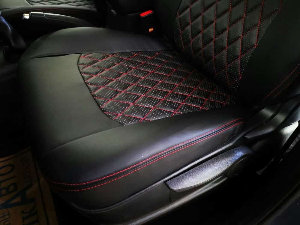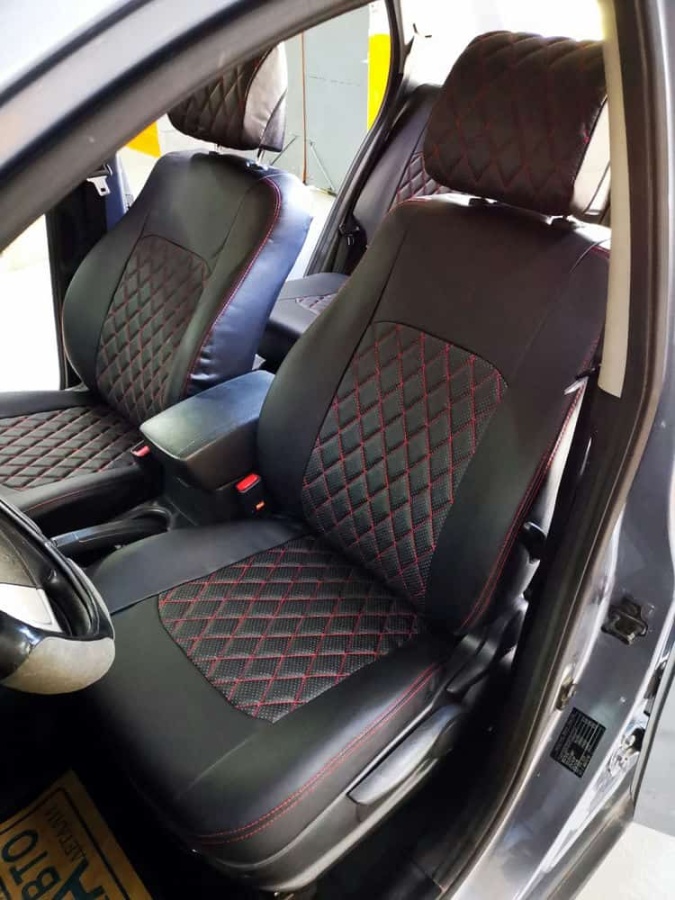 Авточехлы Ssang Yong Actyon Санг Йонг Экшн экокожа черная красная нить ромб 2011-2021г