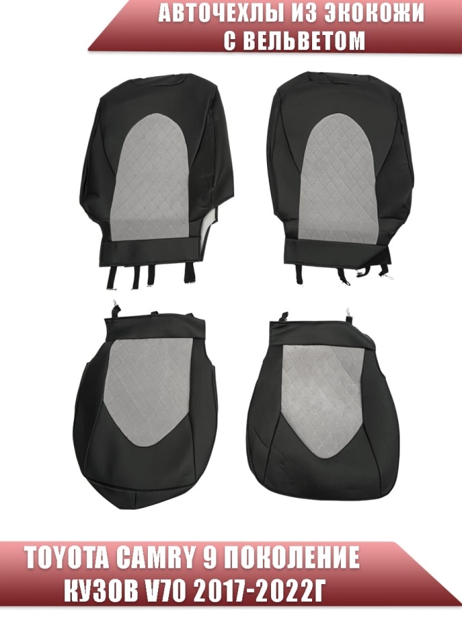 Авточехлы Toyota Camry Тойота Камри c 2018г кузов V70 экокожа вельвет черно-серый ромб