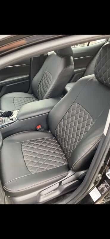Авточехлы Toyota Camry Тойота Камри с 2018г кузов V70 экокожа черная бежевая нить ромб