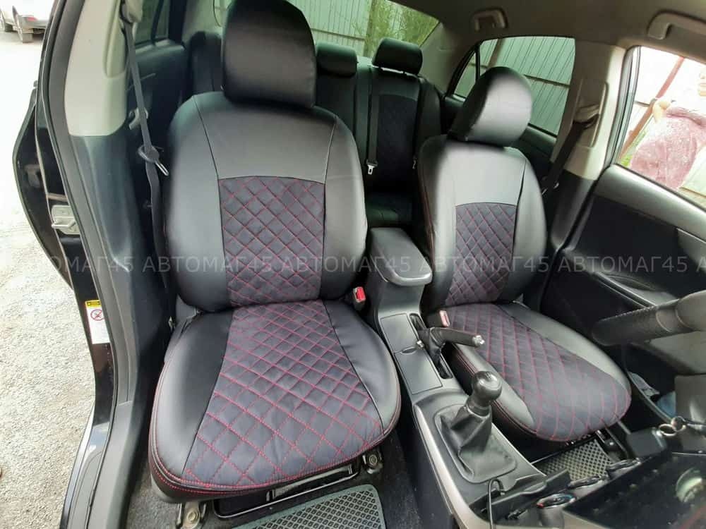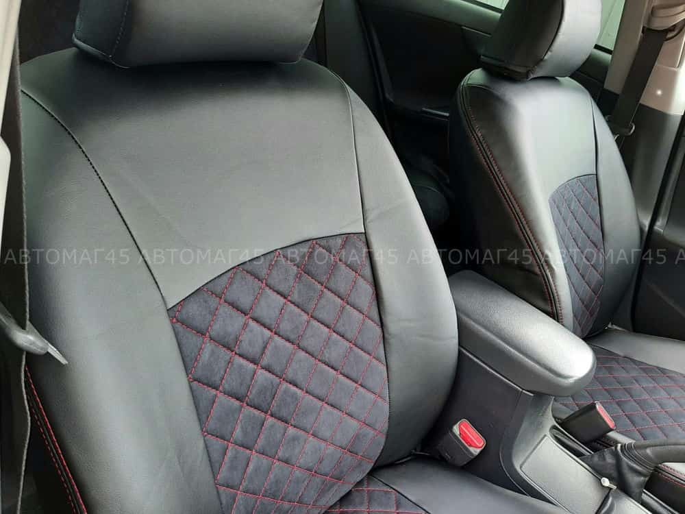 Авточехлы Toyota Corolla Тойота Королла 2007-2013г кузов 150 экокожа алькант черная крас.нить ромб
