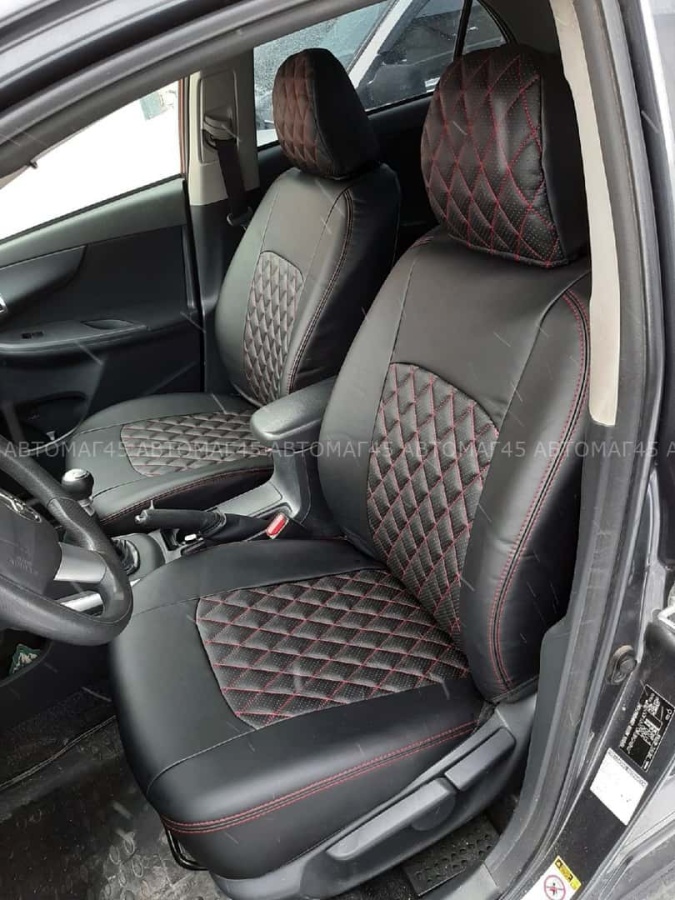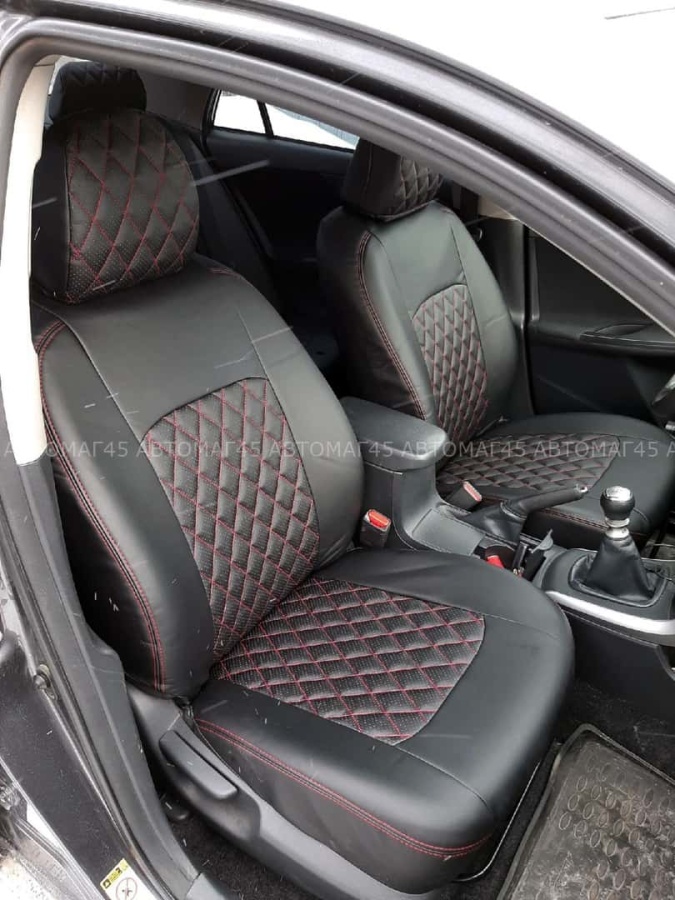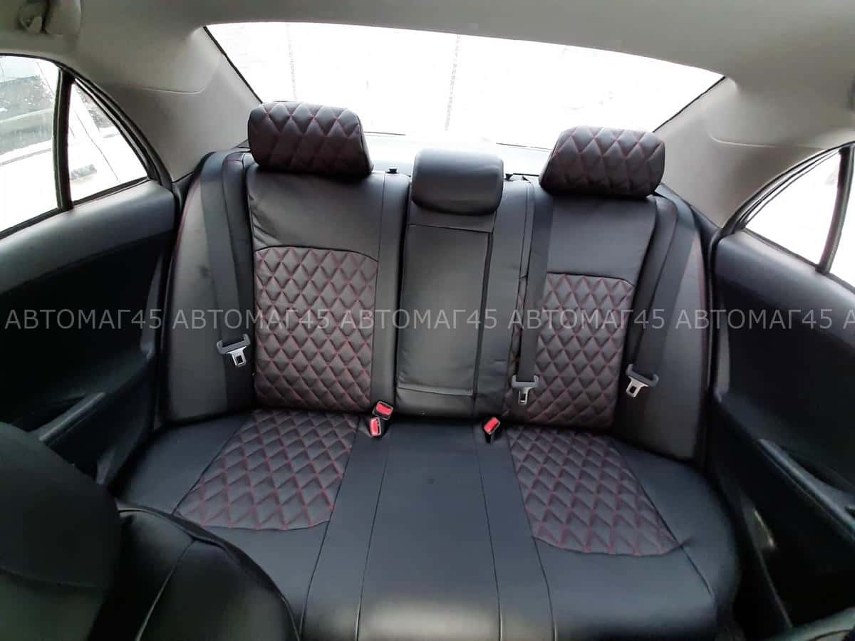 Авточехлы Toyota Corolla Тойота Королла 2007-2013г кузов 150 экокожа черная нить красная ромб