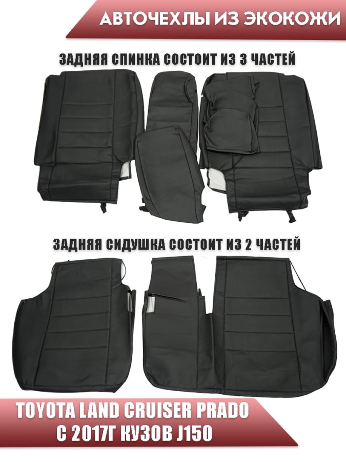 Авточехлы Toyota Land Cruiser Prado 2017-2022г кузов J150 экокожа черная
