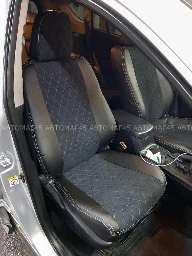 Авточехлы Toyota RAV4 Тойота Рав4 2012-2019г XA40 экокожа алькан черная серая нить ромб Maximal Vip