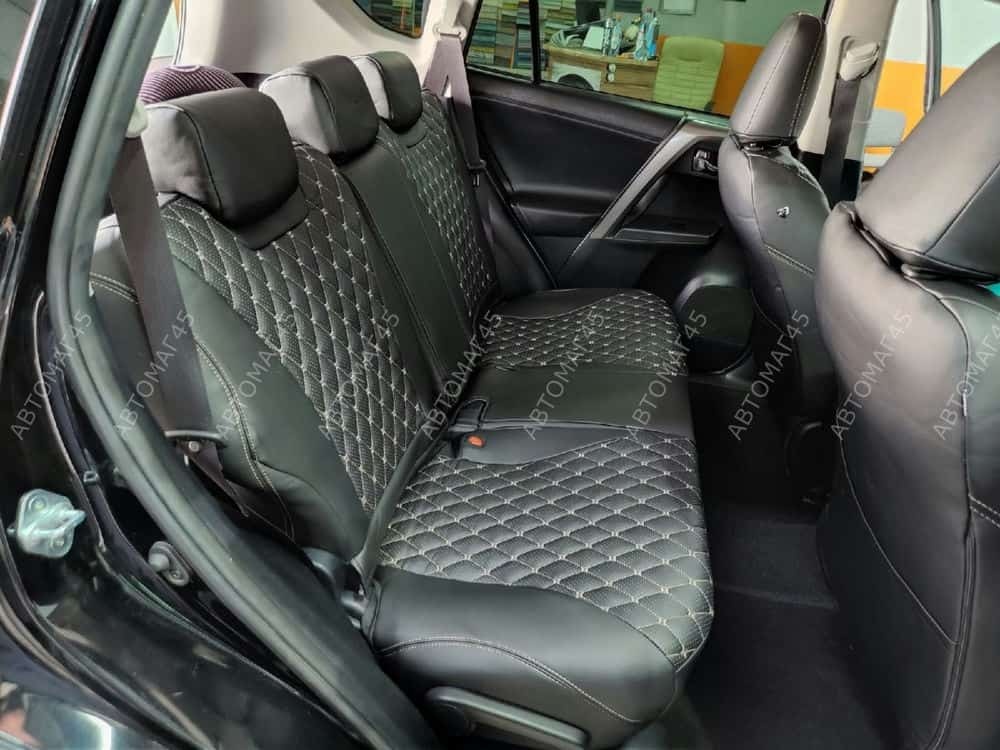 Авточехлы Toyota RAV4 Тойота Рав4 2012-2019г XA40 экокожа черный модель Байрон