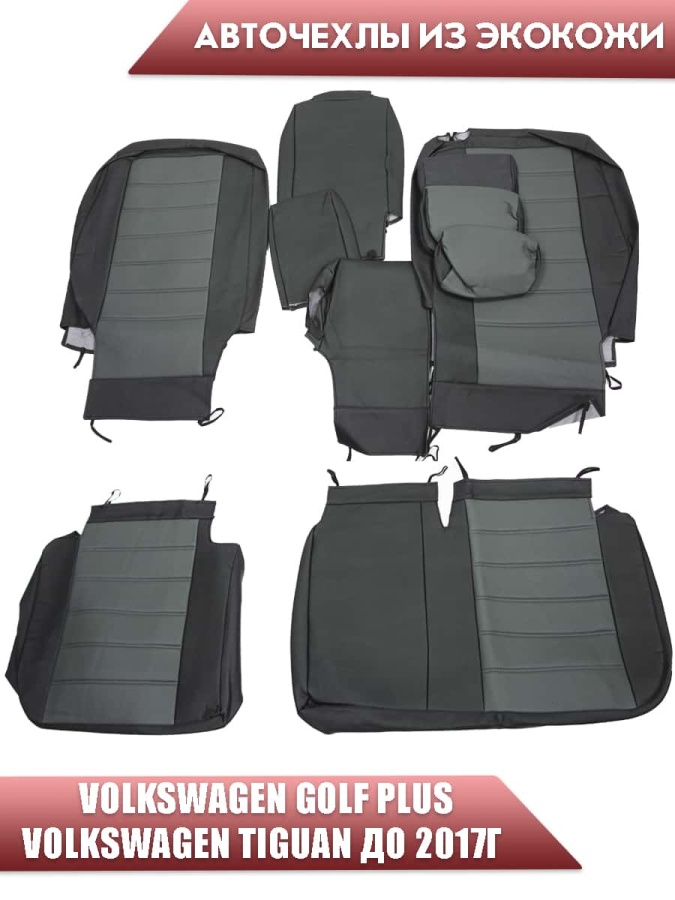 Авточехлы Volkswagen Golf Plus Гольф Плюс Volkswagen Tiguan Тигуан до 2017г экокожа черно-серая