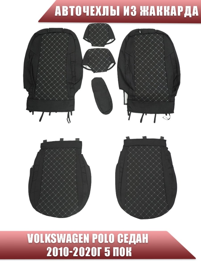 Авточехлы Volkswagen Polo Фольцваген Поло седан 1/1 2010-2020г жаккард ромб драйв