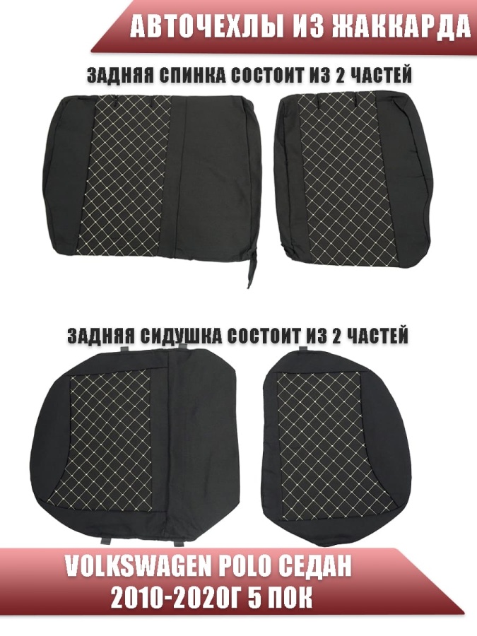 Авточехлы Volkswagen Polo Фольцваген Поло седан 2/3 2010-2020г жаккард ромб драйв