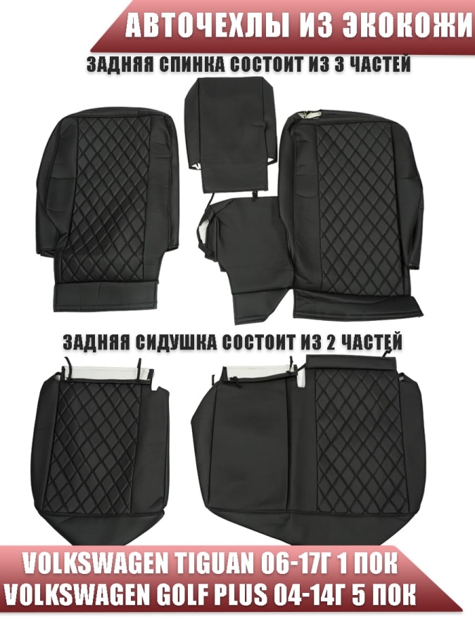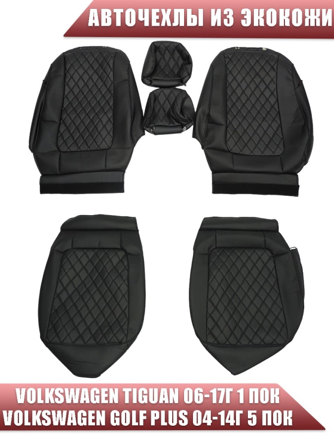 Авточехлы Volkswagen Tiguan Тигуан Volkswagen Golf Plus до 2017г со столиком экокожа черный ромб
