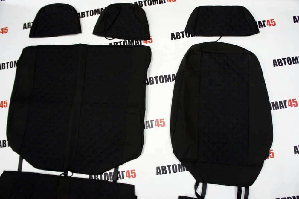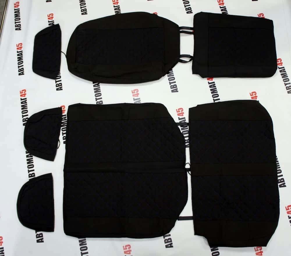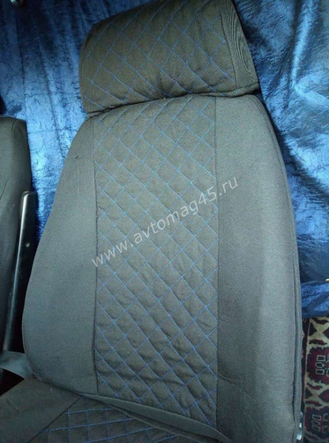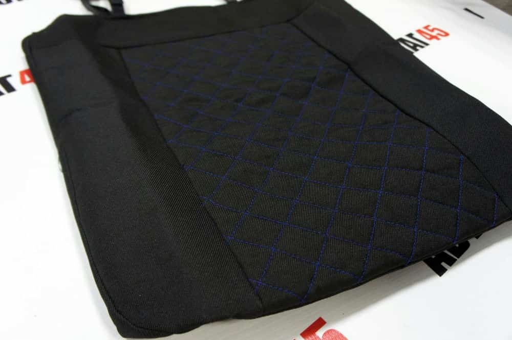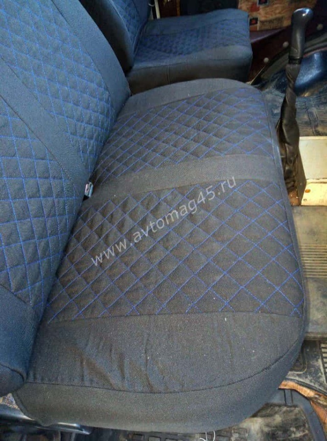 Авточехлы Газель трехместная жаккард черный с синей ниткой ромб без поролона Барс