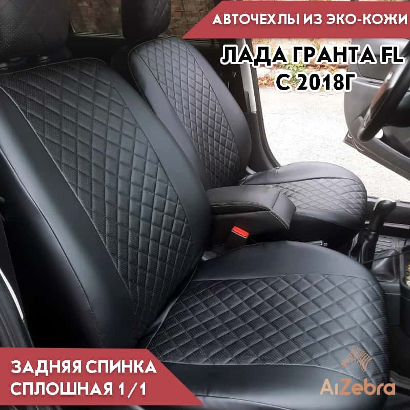 Авточехлы Лада Granta Гранта 1/1 с 08.2018г экокожа черная с серой ниткой ромб Офис
