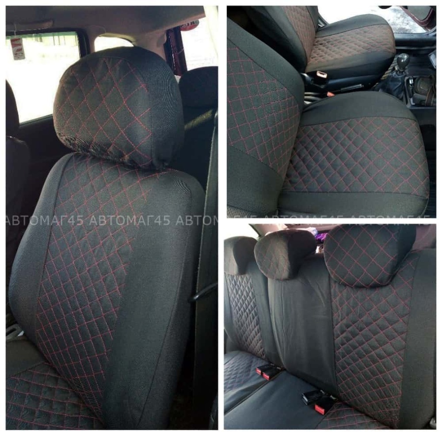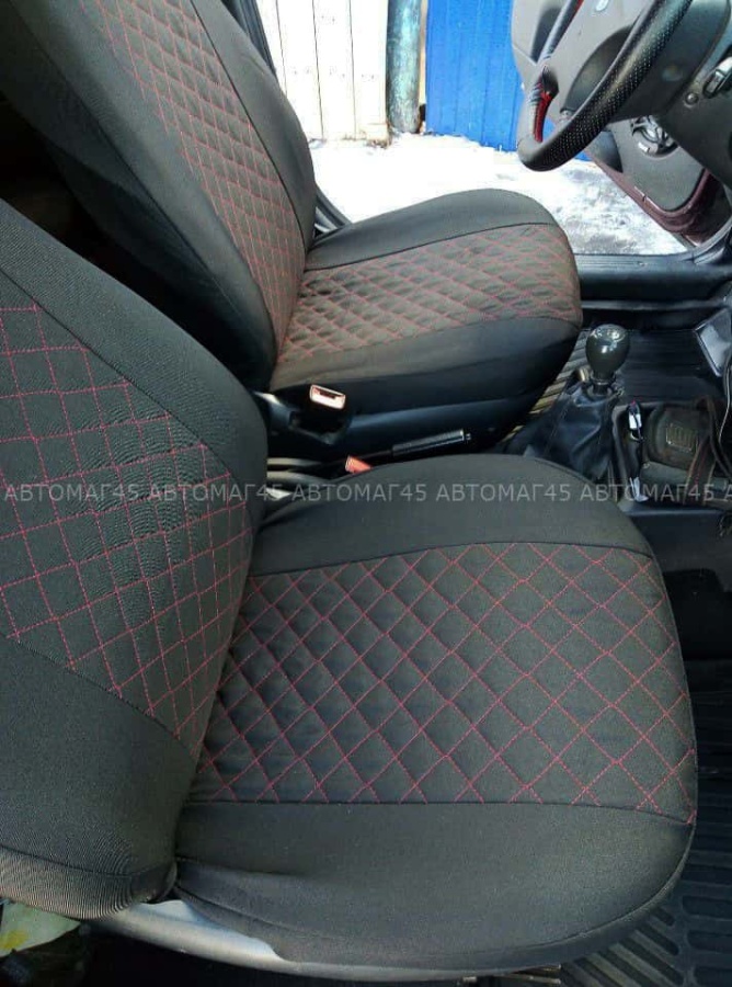 Авточехлы Лада Kalina Калина Калина2 жаккард черный с красной ниткой ромб Барс