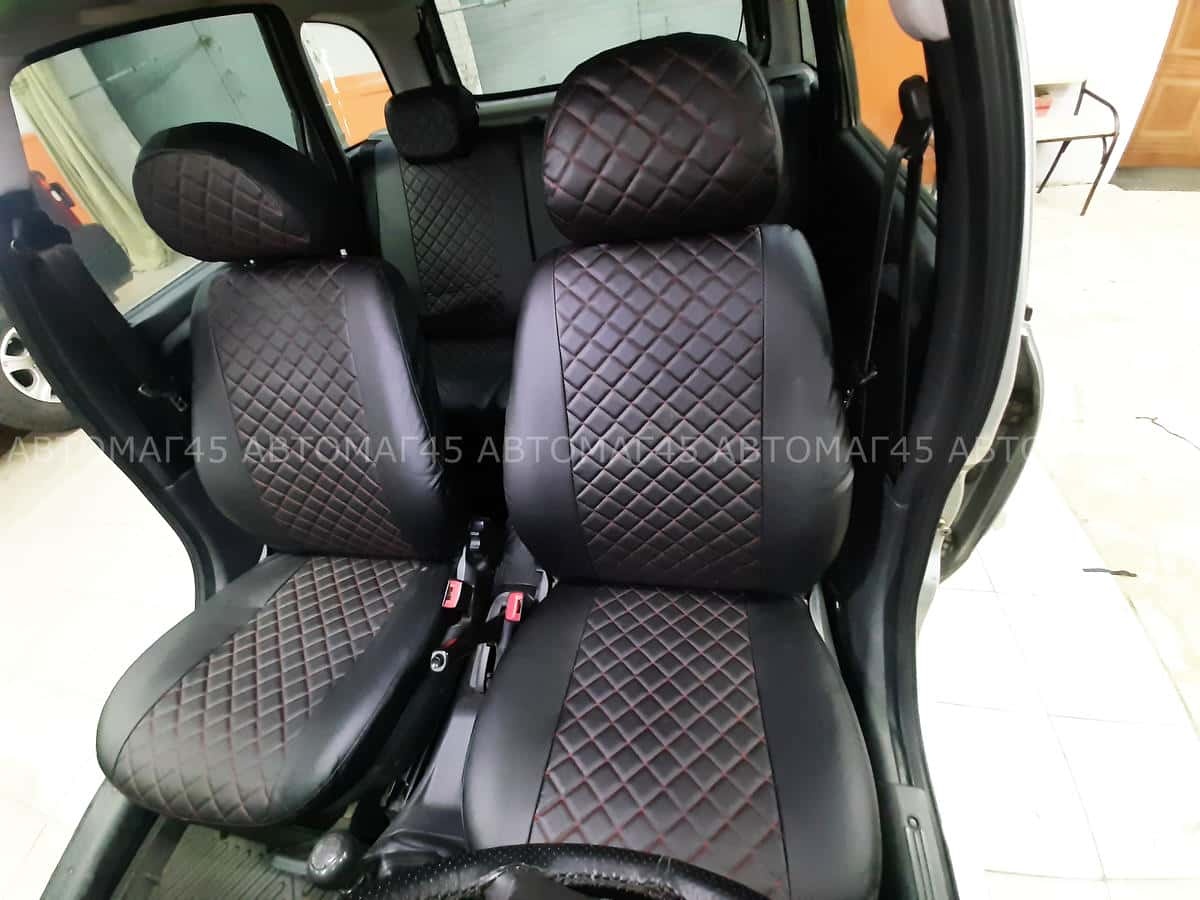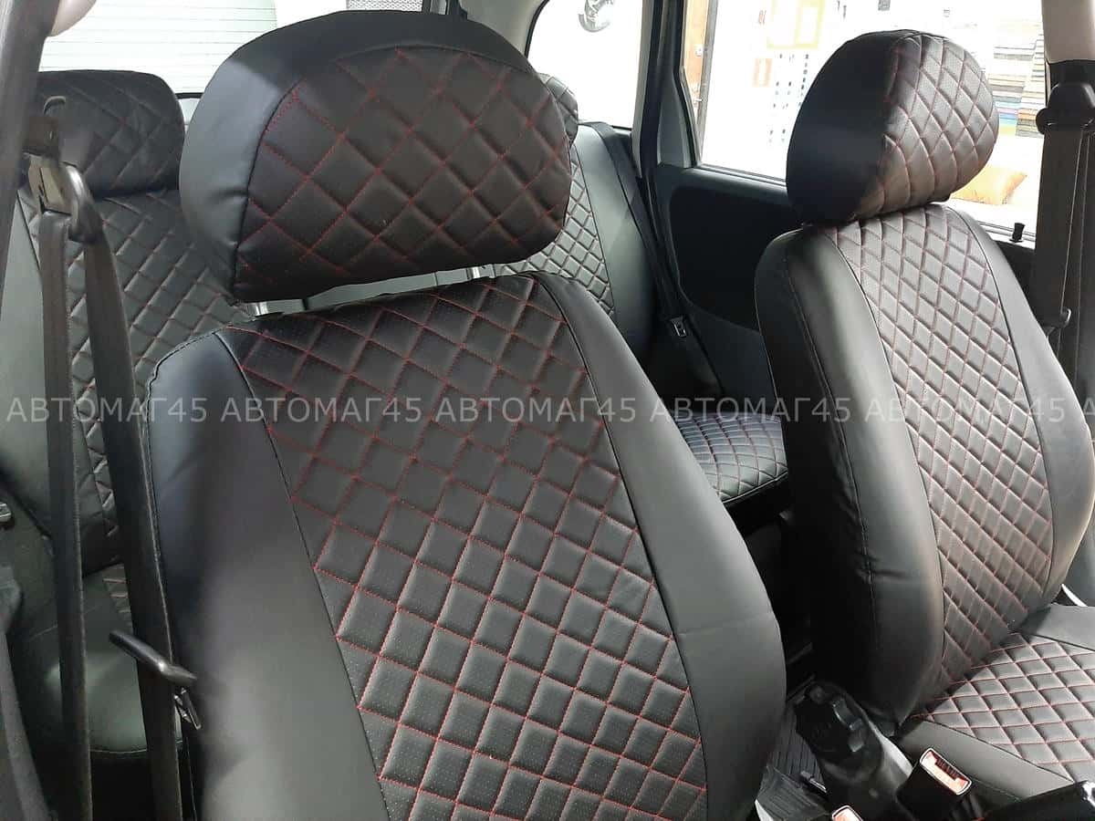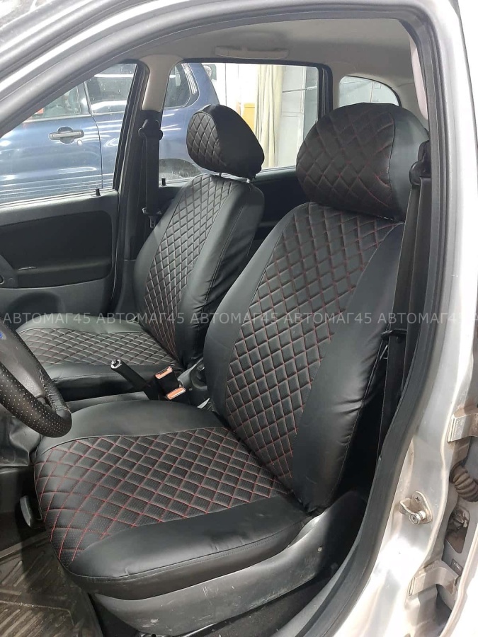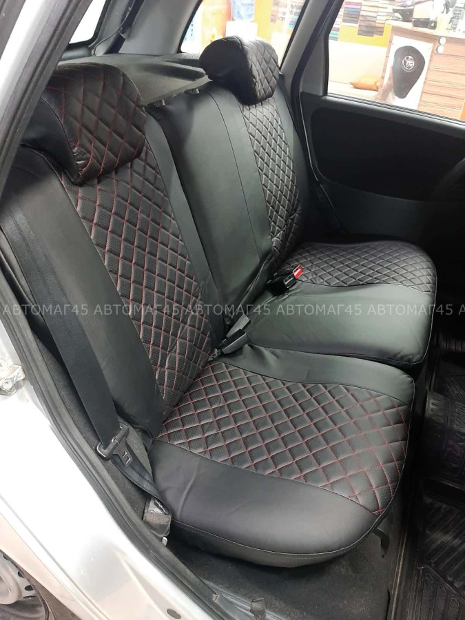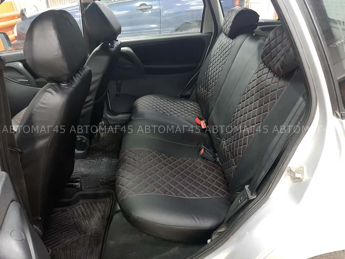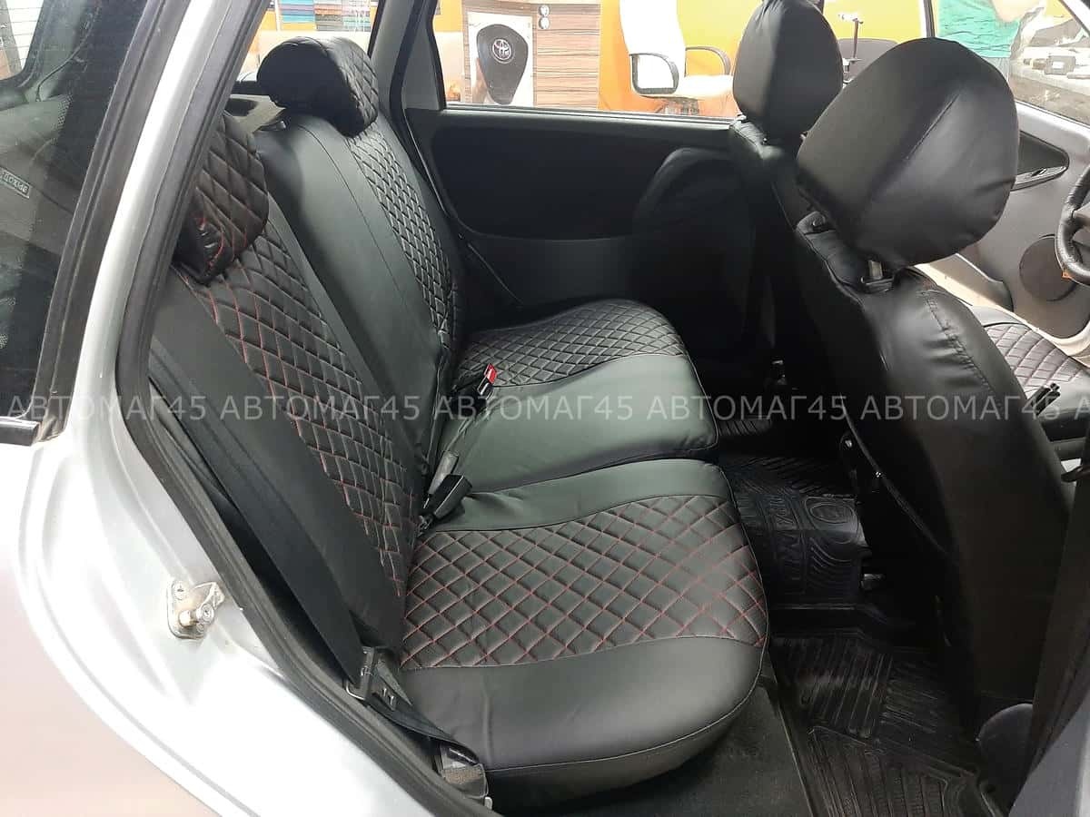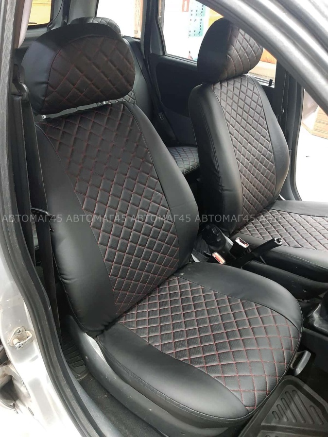 Авточехлы Лада Kalina Калина Калина2 экокожа черная с красной ниткой ромб Барс