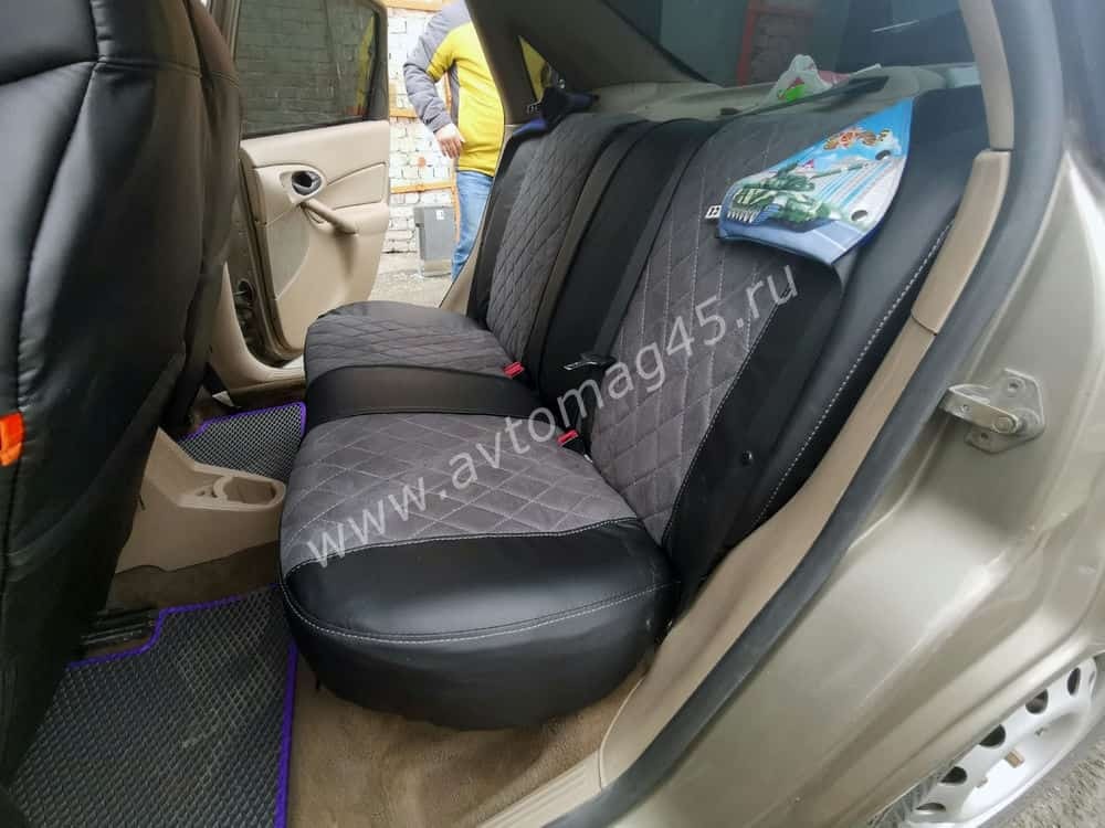 Драйв чехлы универсальные экокожа ромбы черный замша темно-серая комплект