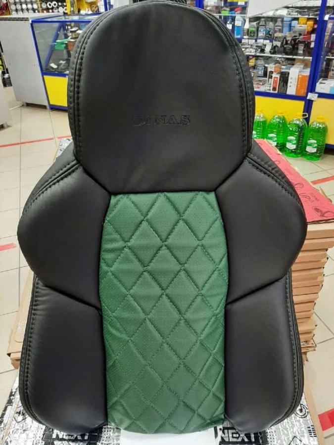 Драйв чехлы универсальные экокожа Ромбы черный зеленый комплект