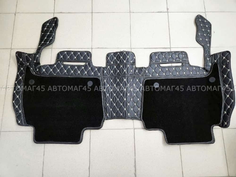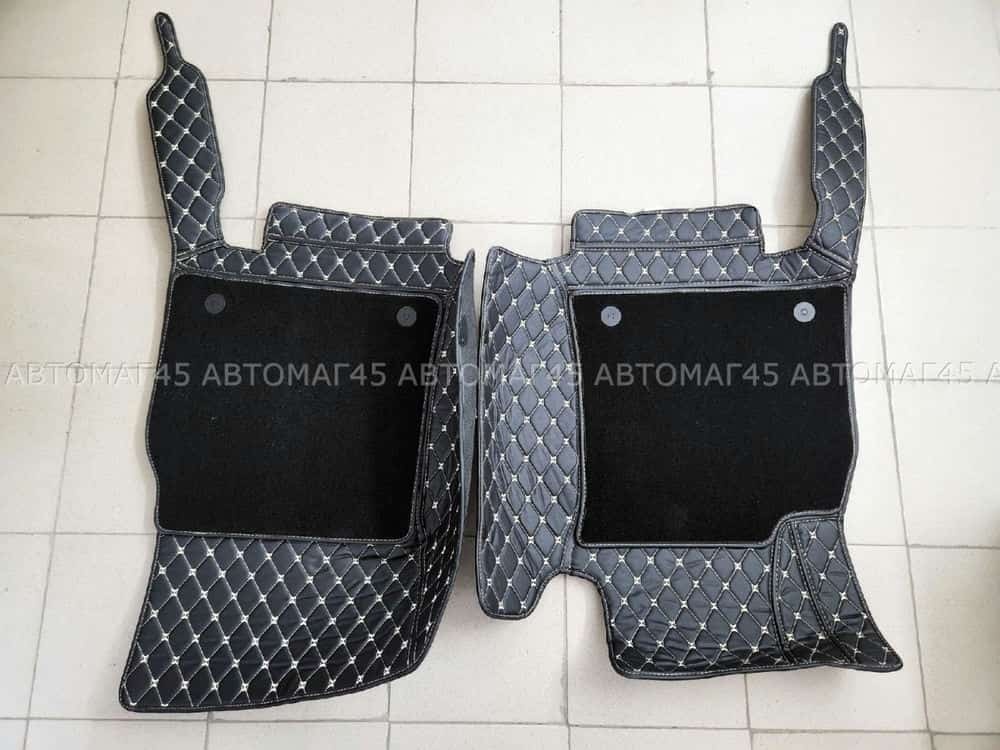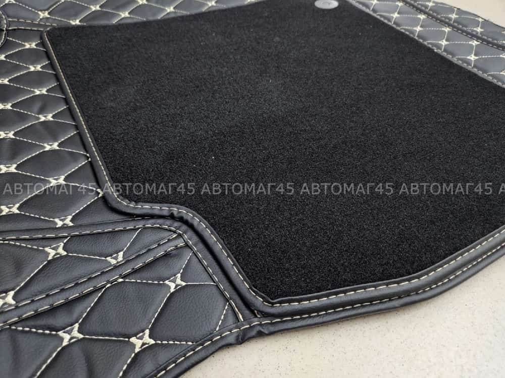 Ковры 5D экокожа Toyota Land Cruisеr 200 2007-2015г черный с бежевой ниткой+ворс комплект АКЦИЯ!