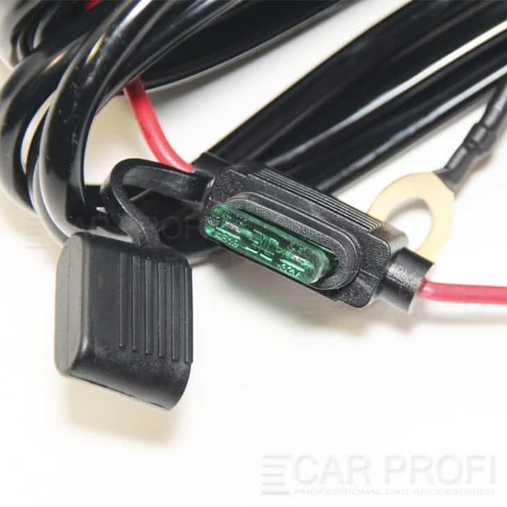 Проводку с клеммами (от реле: до фар 290см, до блока управления 190см, до АКБ 45см. Длинна провода кнопки вкл/выкл 90см.)