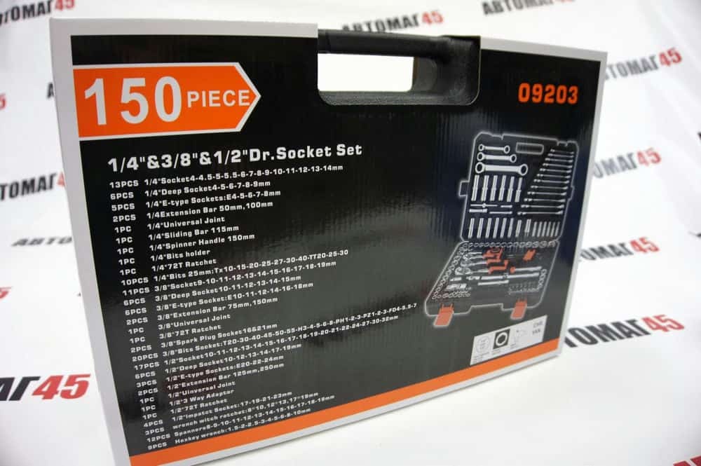 Механик 150 предметов набор инструмента 1/2 3/8 1/4 PM-10150 предназначен для выполнения слесарных, монтажных и ремонтных работ. Инструменты в наборе изготовлены из хромованадиевой стали. Кейс из прочной пластмассы обеспечивает компактное хранение и удобную транспортировку.