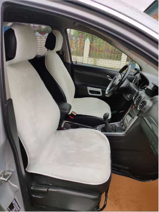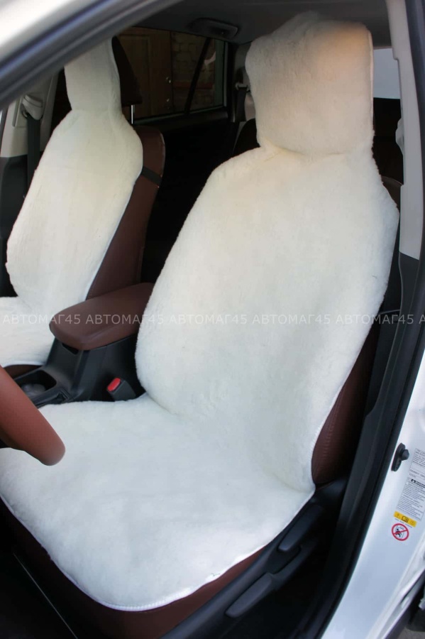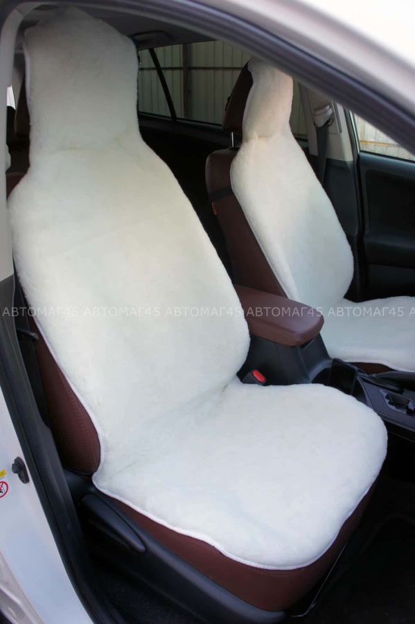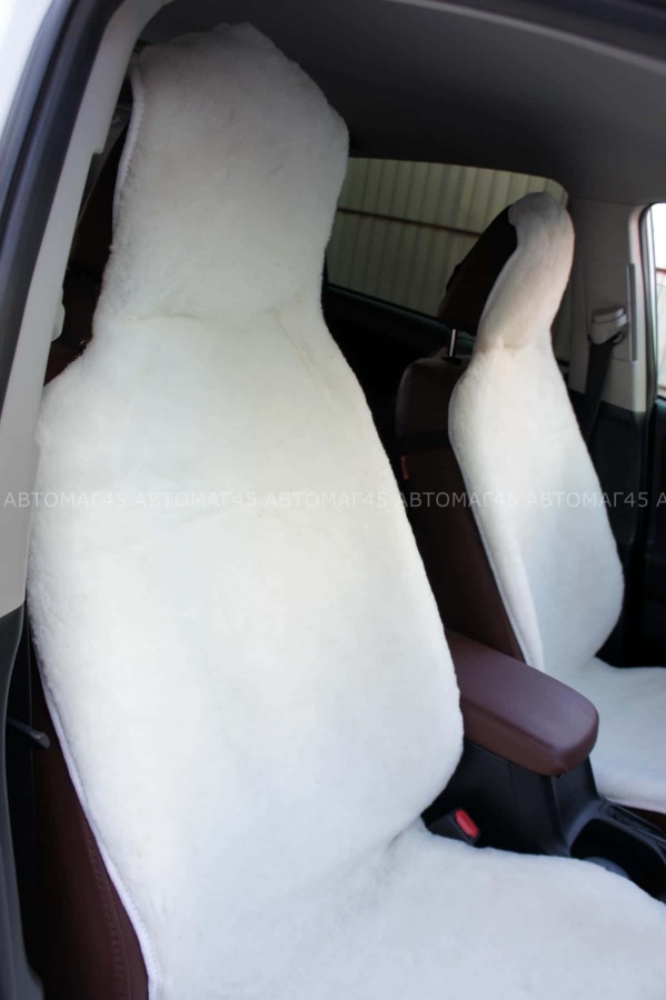 Накидка на сиденье короткий ворс белая шерсть 60% 145х55см 1шт