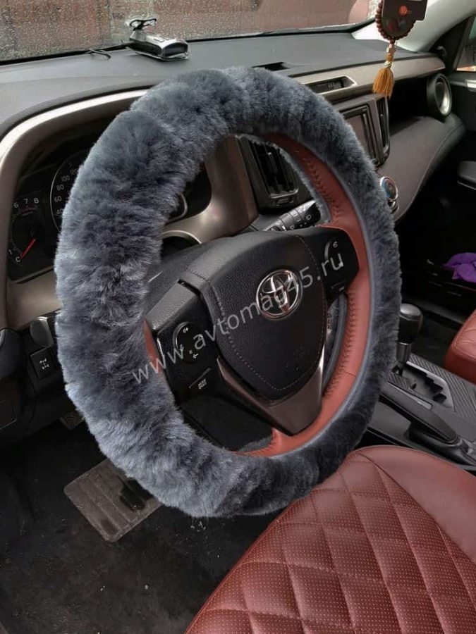 Оплетка руля натуральный мех на коже короткий ворс мутон серый
