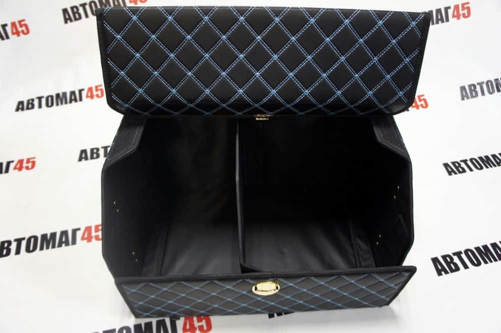Органайзер багажника кофр экокожа черный с синей ниткой 70 x 30 x 30см MAXIMAL Big