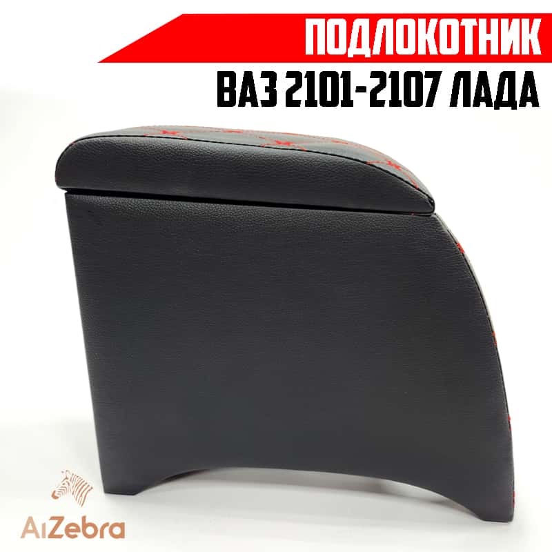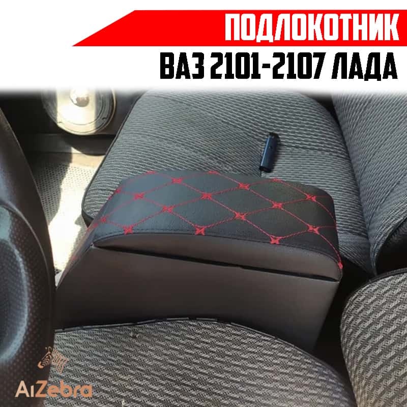 Подлокотник ВАЗ 2101 2107 черный с красной ниткой ромб экокожа эко