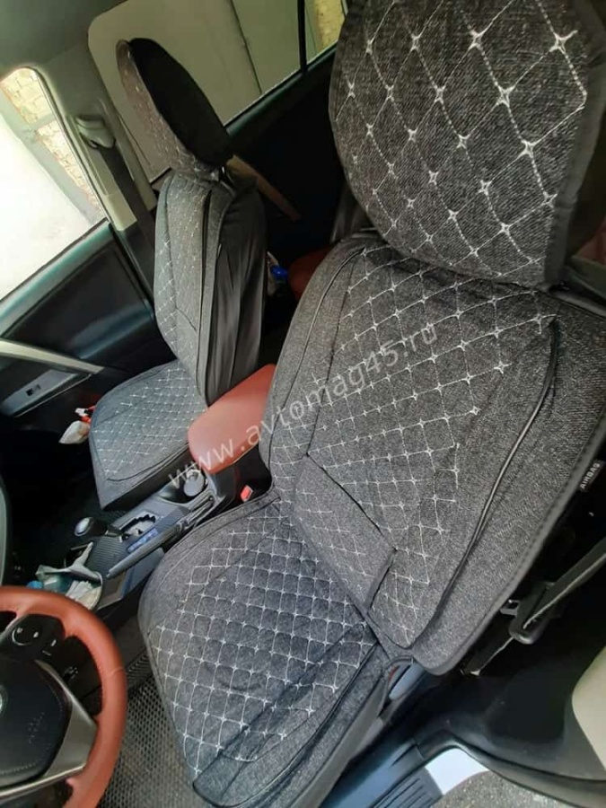 Чехлы накидки на сиденье лен форма 2Д серый передние 2шт
