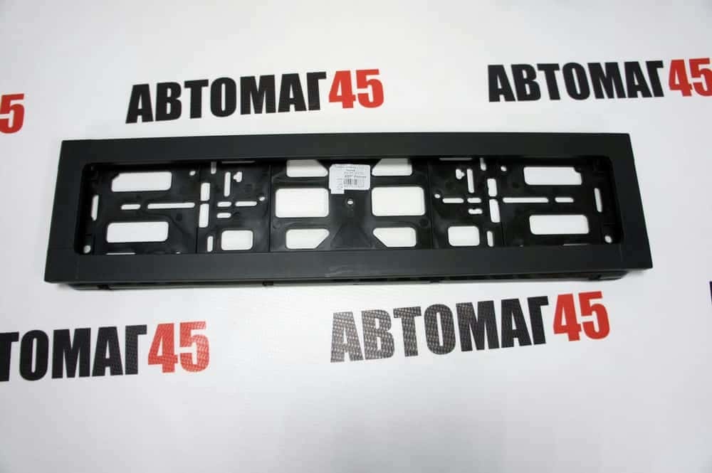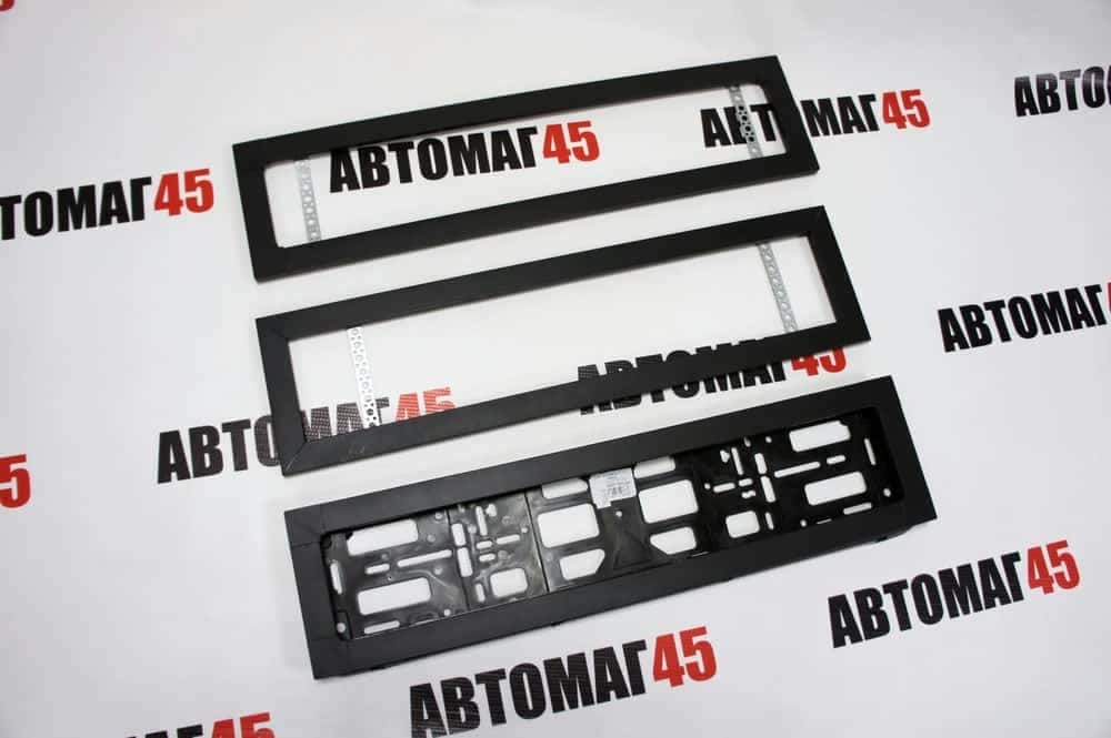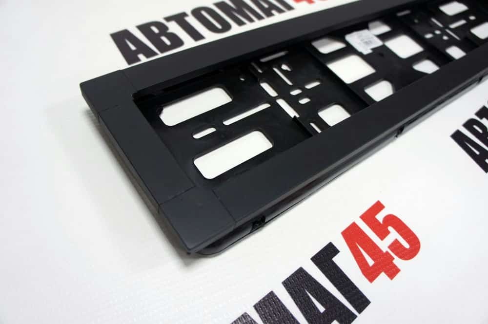 Широкая рамка номерного знака черная с задней стенкой алюминий