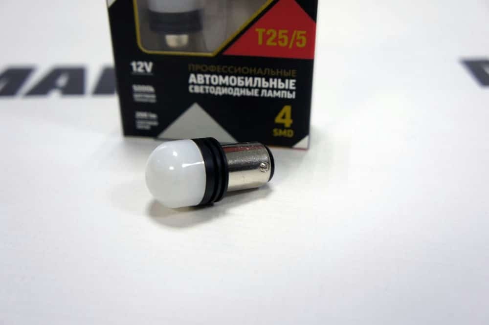 Маяк лампа светодиодная P21/5W T25/5 6SMD c цоколем 5000K 200Lm двухконтактная белая